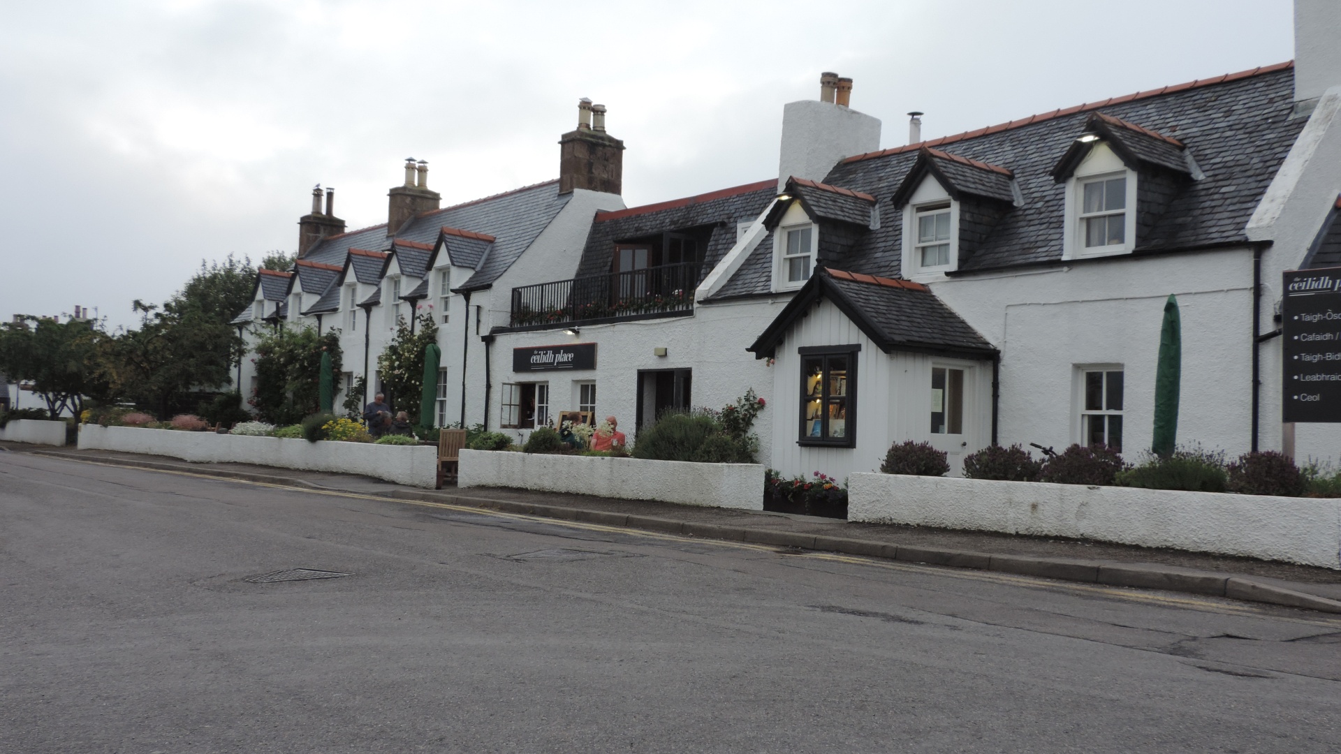 Zum besseren Verständnis sei angemerkt, dass die Tankstellen hier im schottischen Nordwesten maximal aus zwei unscheinbaren Zapfsäulen am Straßenrand bestehen. Eine für Benzin, eine für Diesel. Kein Dach, kein besonderer Hinweis und kein besonderes Pflaster. Da kann man schon mal dran vorbeifahren, ohne sie zu bemerken. Wir mussten in dem Lebensmittel-Laden unseren Wunsch nach Diesel vortragen, dann mit der Bedienung wieder raus zum Tanken und dann wieder rein zum Bezahlen. Die Fläche vor den Zapfsäulen war so abschüssig, dass der Tank nur zu 3/4 gefüllt war.